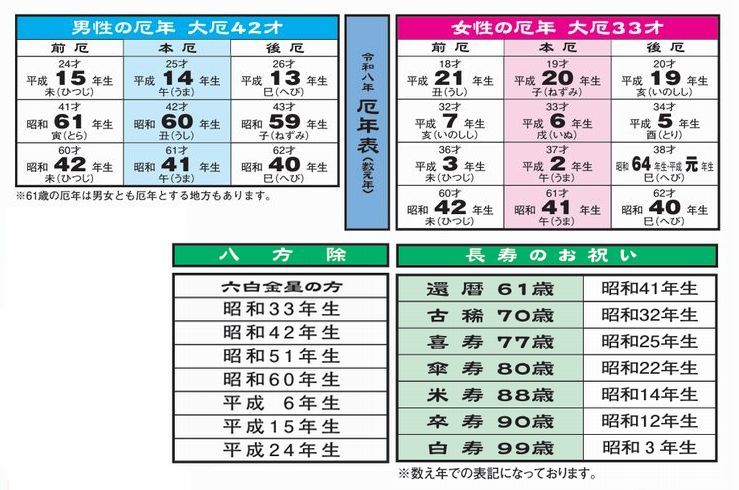 厄年は古くから伝わるものですが、現代人にとっても心身に大きな変化が起きやすい時期です。厄除のお祓いを受け、一年の平穏無事を祈りましょう。また、長寿のお祝いのご祈祷も奉仕いたしております。ご祈祷を受け、ご家族皆様でお祝いいたしましょう。